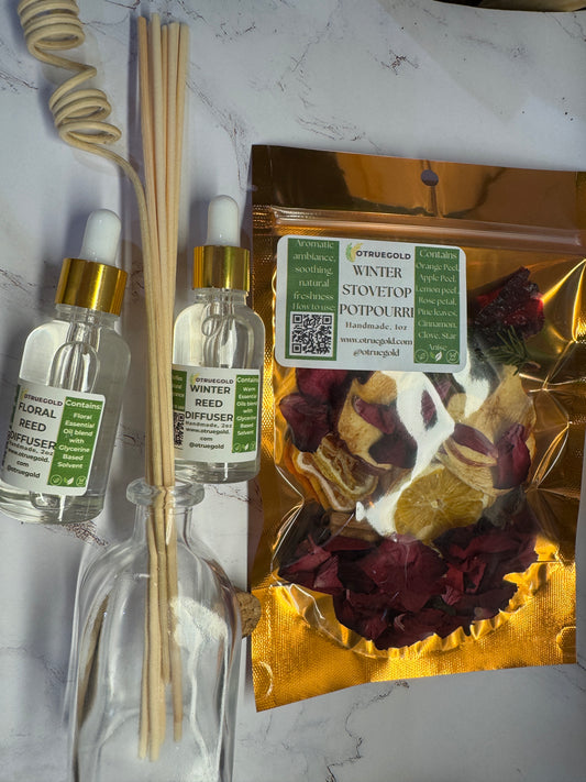 Housewarming Gift- Stove top potpourri, Natural Reed Oil Diffuser + Reed Sticks
