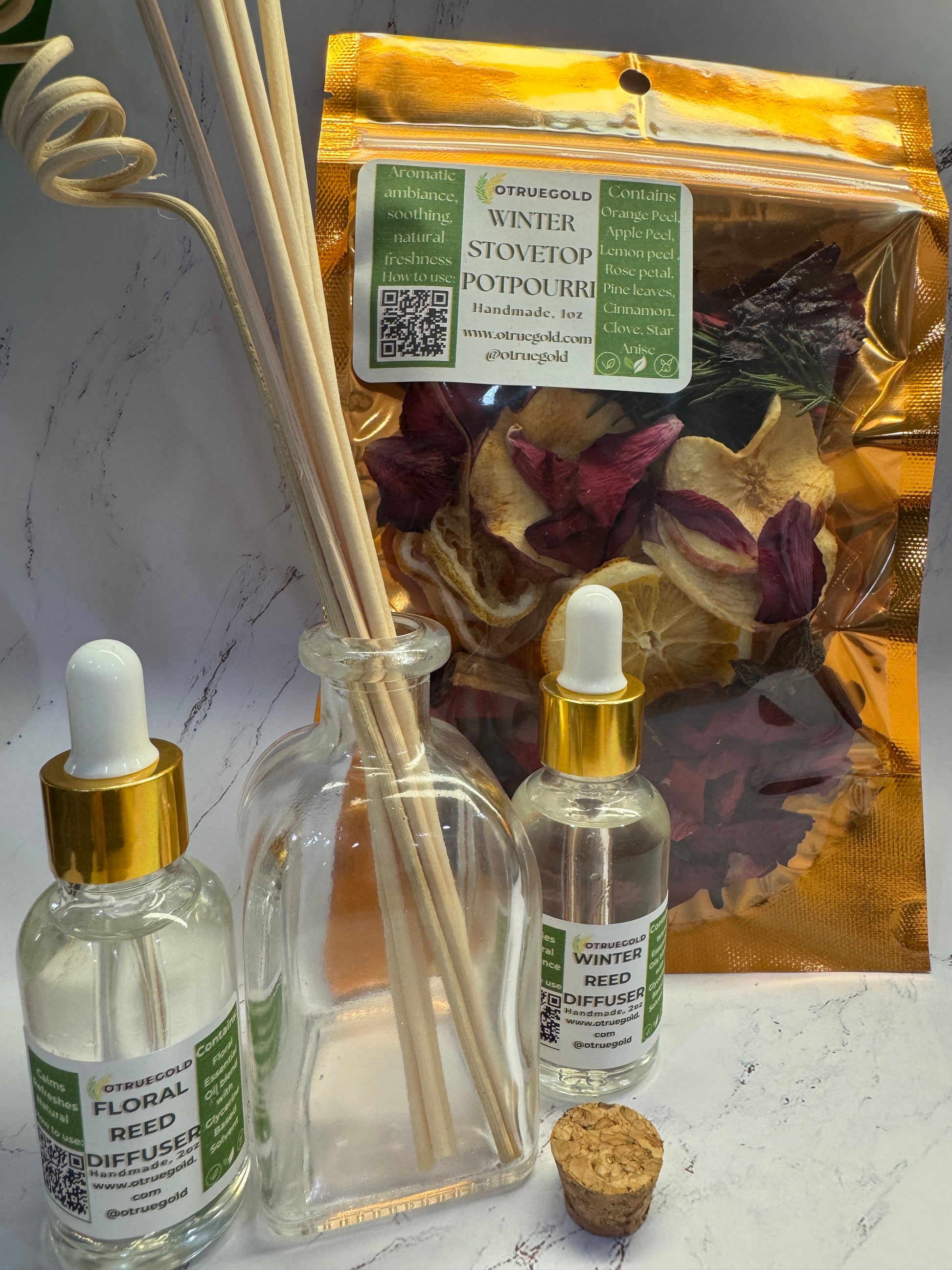 Housewarming Gift- Stove top potpourri, Natural Reed Oil Diffuser + Reed Sticks