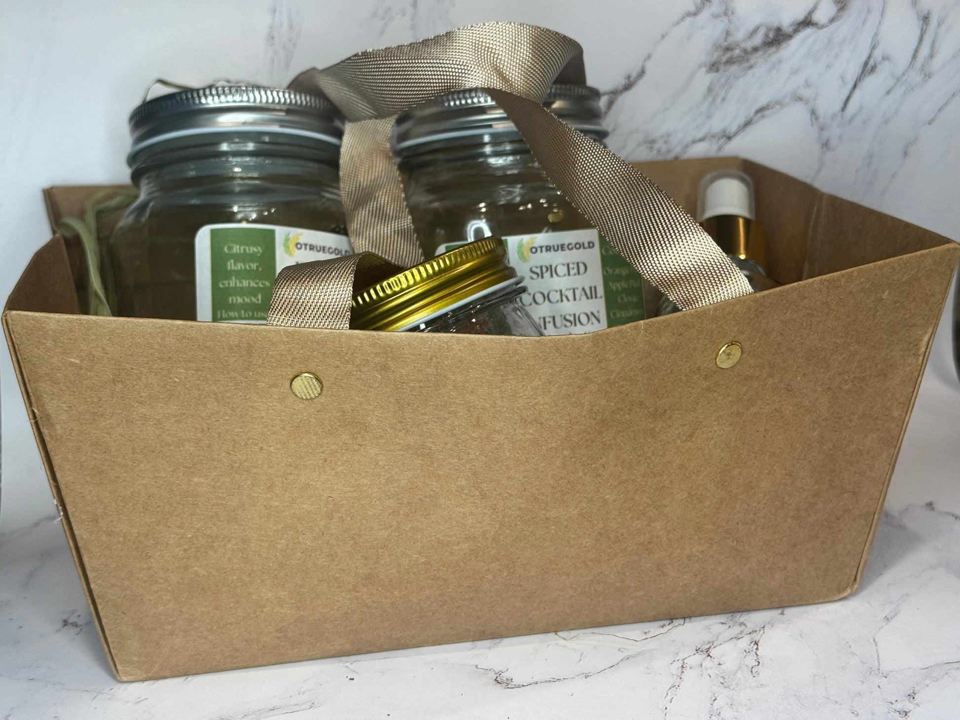 1) 2 Cocktail Infusion Mix with Drinkable jars - Fruity or Spiced– A delightful blend of fruit flavors to create a refreshing, romantic drink. Simply add to your favorite spirit or sparkling water for a celebratory toast.